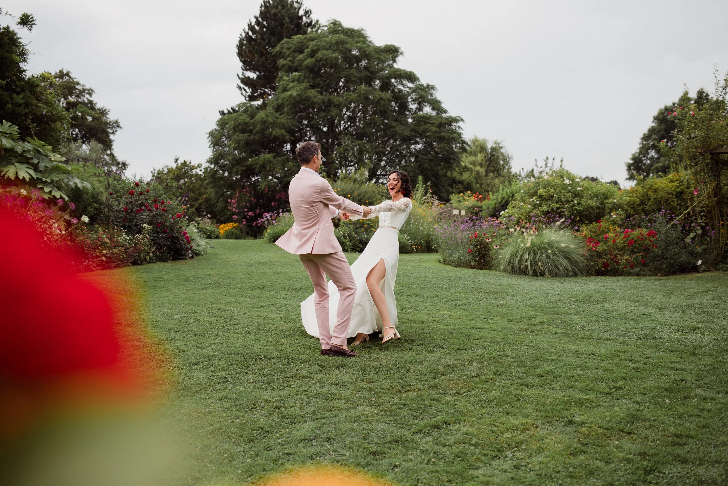 Je commence l’écriture de cet article avec la chanson “Drug You” de Half Moon Run, un groupe que j’aime particulièrement :) J’ai tellement de choses à dire sur le mariage de M&M, que je comprendrais si vous lisez en diagonale ou si vous ne regardez que les images de ce jour là. Je connais bien ce petit couple, puisque j’ai immortalisé la demande en mariage sur la Dune du Pyla en octobre 2022. Que d’émotions déjà au début de cette aventure :) Le Jour J est tout aussi atypique : la messe est à 10h, je suis attendue à 7h30 pour les préparatifs de Mathieu dans le centre-ville de Auch, avant de rejoindre sa future femme dans la superbe boutique écoresponsable Art des Sens. Des deux cotés, l’ambiance est détendue, les rires fusent. On en parle de ce costume rose pour le marié ? Cela change de tout ce que j’ai vu ces dernières années ! Marion, avec ces touches de rouges et d’orange est tout aussi superbe dans sa robe Naomie‘s Closet. La cérémonie religieuse a lieu dans la cathédrale d’Auch, incroyable terrain de jeu pour moi : elle est lumineuse, spacieuse, je peux aller et venir sans trop me faire remarquer. La sortie de l’église se fait en fanfare.. au sens littéral du terme : toute la bandas du marié les attends sur le parvis (jour de marché dans la capitale du Gers !) Quelle ambiance !! C’était dingue : tout le monde dansait, chantait ! Nous avons fait une photo de tous les invités sur les fameux escaliers monumentaux, tout près de la cathédrale et puis direction.. le lieu du cocktail !