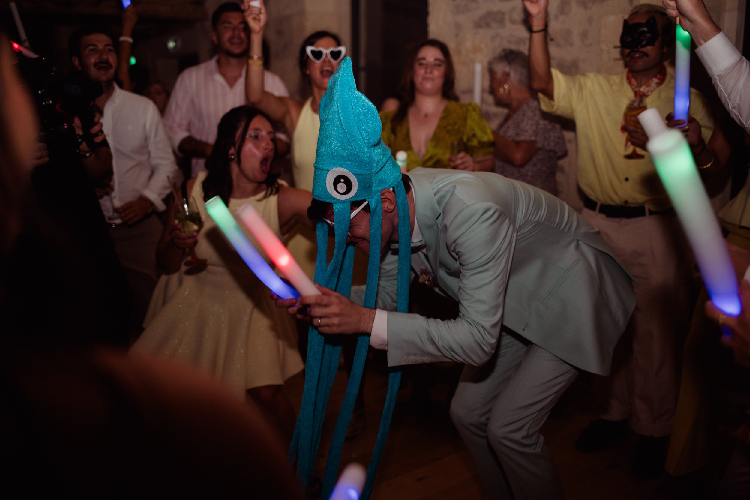 Ça dansait déjà pendant le cocktail : le Dj et le saxophoniste ont mis l’ambiance dès les premières notes jouées ! Quelques photos de groupes, un lancé de Nougat (représentant le made in Avignon !) pour remplacer le lancé de bouquet et nous embarquons Guillaume & Alexandre pour un moment rien qu’eux deux, devant nos objectifs. Généralement, au château de Cantecort, le coucher de soleil est magnifique (c’est pour cela que j’aime autant ce lieu de reception!), mais ce jour là, il nous a fait faux-bond ! Pas besoin de soleil quant on a deux amoureux qui s’éclatent et profite à fond de leur journée !